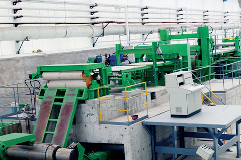 涂彩鋼板生產(chǎn)線年產(chǎn)能25萬噸,可生產(chǎn)規(guī)格為0.2~1.2MM*800~1250MM,生產(chǎn)線采用二涂二烘的輥涂工藝復(fù)合而成。基板采用本公司生產(chǎn)的無鋅花鍍鋅板或鍍鋁鋅硅板,具有優(yōu)良的耐蝕性、力學(xué)性、外觀裝飾性,應(yīng)用于建筑、家電等新興領(lǐng)域。